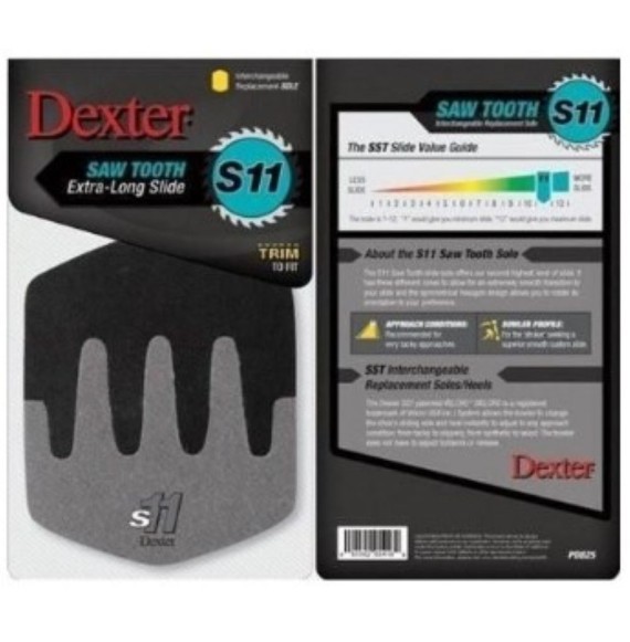 The Dexter S11 Sawtooth Slide Sole was created for bowlers who like to slide really long with little resistance. By integrating 2 different materials (Grey felt with Black Ice) Dexter designed a slide that has 3 different zones including the middle section that combines the two materials in a sawtooth pattern. This design provides a smooth transition during your sliding approach